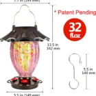 Solar Hummingbird Feeder, Color Changing, 32 fl.oz, Hand Blown Glass, Leak Proof