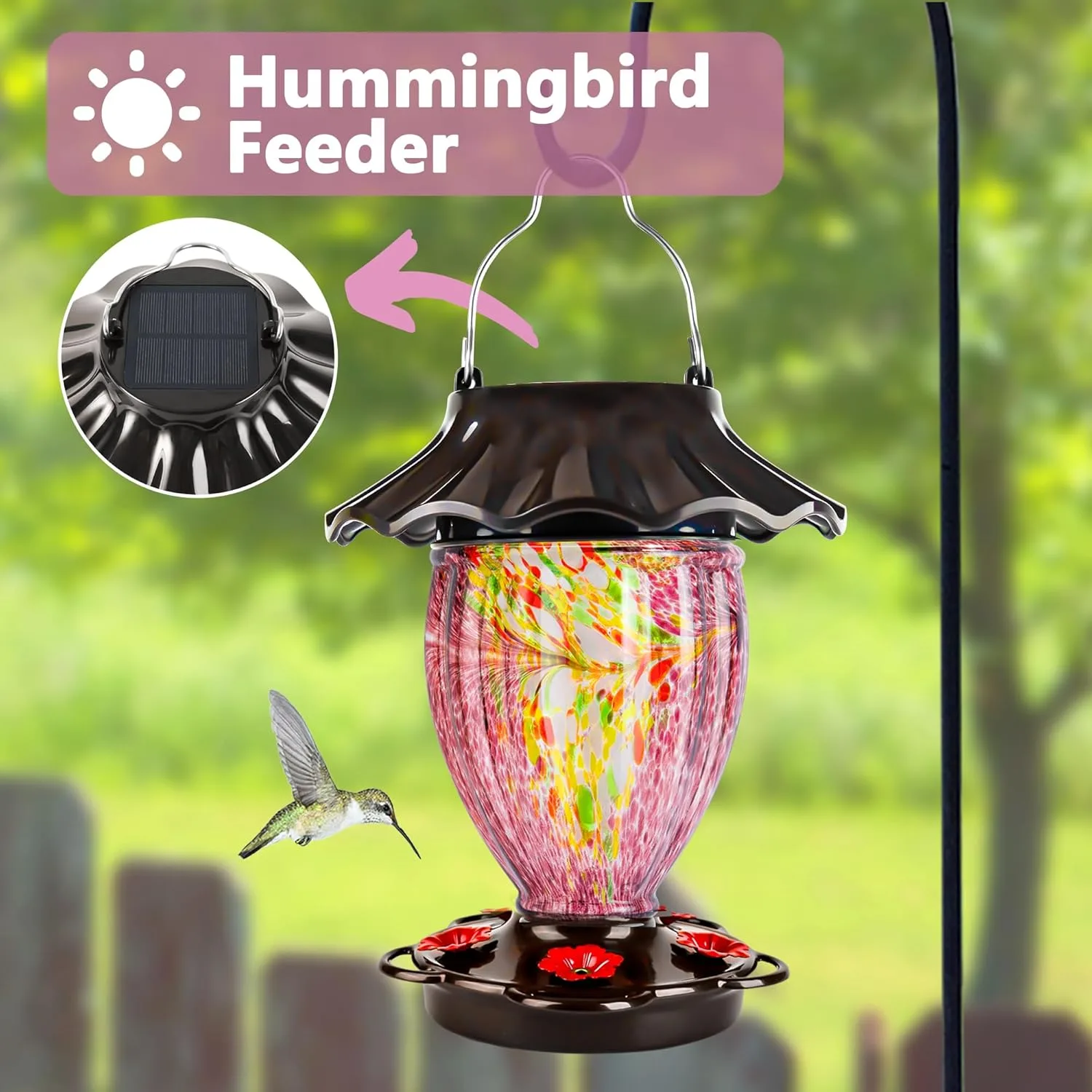 • BEAUTIFUL GARDEN DECOR: Solar hummingbird feeders are beautiful garden decor because they add color and life to your garden. They also help attract flying jewels, which can be fun to watch. Additionally, they are easy to use for people of all ages.