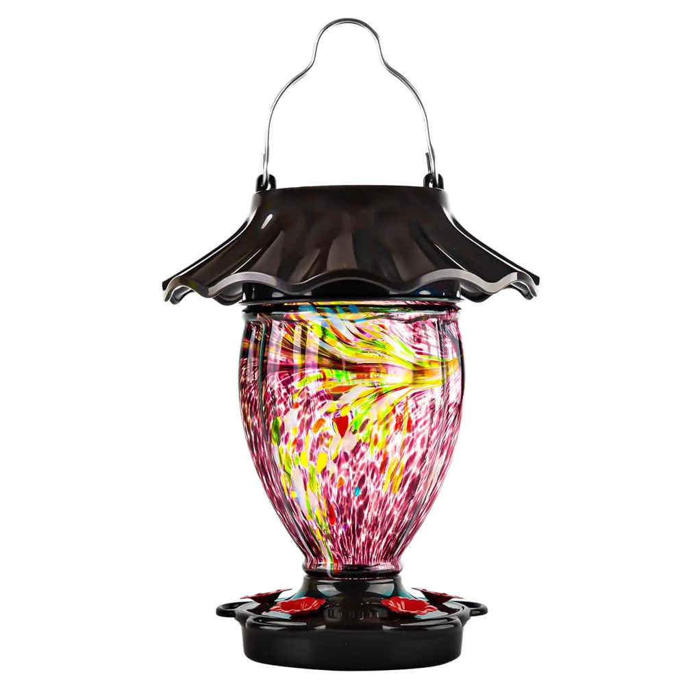 • LEAK PROOF & SEE THROUGH : This vintage glass feeder features a convenient 32 fluid ounces capacity, a slender shape and a completely sealed base that has the least drips and spills. Easy viewing of the nectar level through the colorful yet translucent glass reservoir.