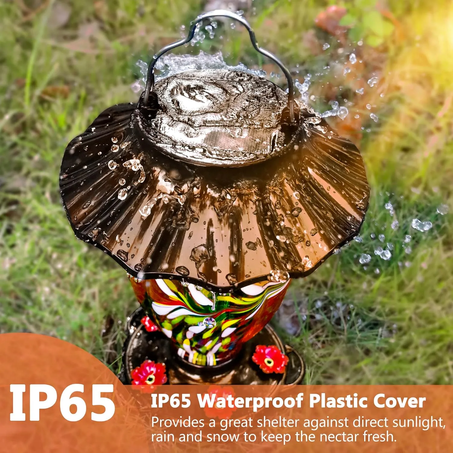 • HAND BLOWN GLASS ART: Each glass reservoir is handcrafted using an intricate process that has been handed down through generations. The curves and pattern are convinced by glass artists when it is around 2,300 degrees, making each feeder truly one of a kind.