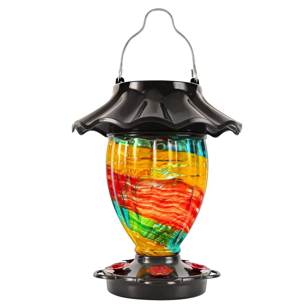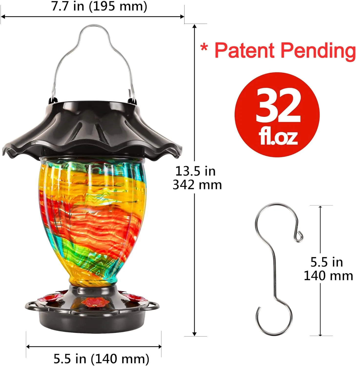 - LEAK PROOF & SEE THROUGH : This vintage glass feeder features a convenient 32 fluid ounces capacity, a slender shape and a completely sealed base that has the least drips and spills. Easy viewing of the nectar level through the colorful yet translucent glass reservoir.